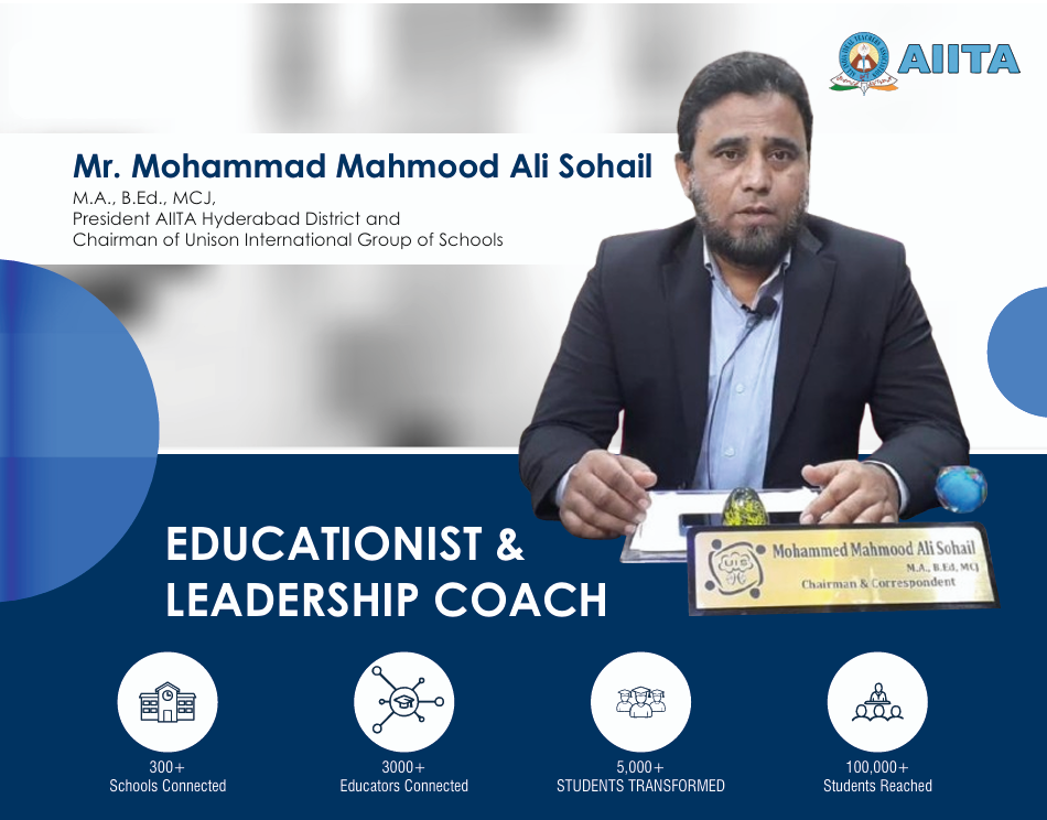 As the President of the All India Ideal Teachers Association (AIITA), Greater Hyderabad, he has led numerous training and development initiatives, impacting thousands of educators. His leadership during the COVID-19 pandemic reflected his commitment to society, providing essential support to private teachers.